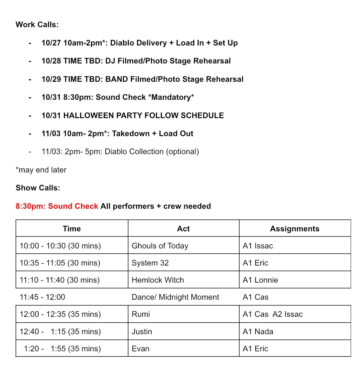 Engineered and operated audio for CalArts Halloween, including full PA system setup, live mixing, and system management across multiple performance environments.